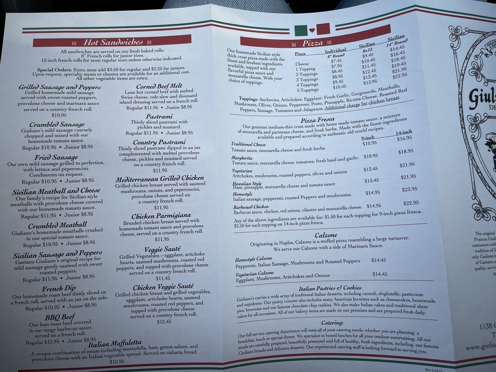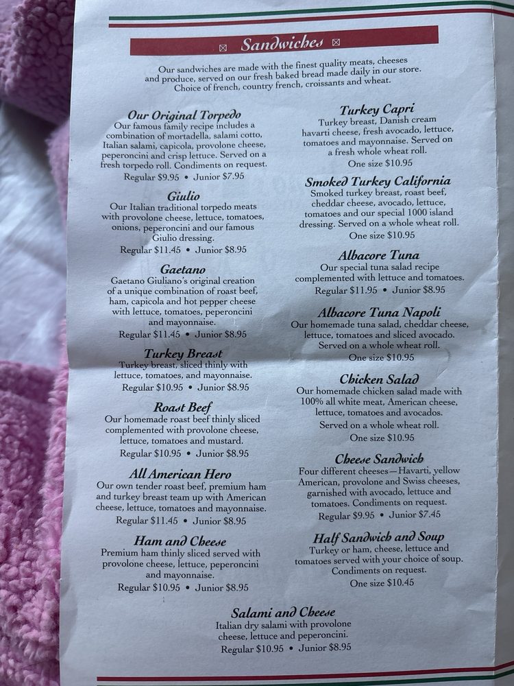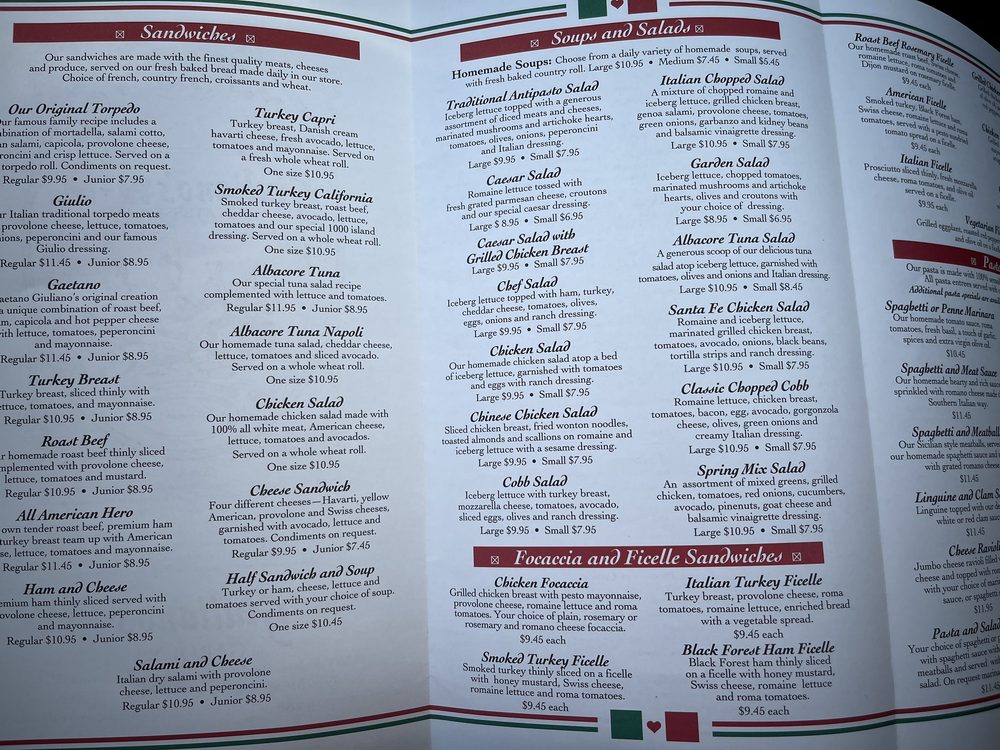 Giuliano’s Delicatessen, a beloved Italian deli in Gardena, CA, offers a delightful menu filled with fresh sandwiches, pizzas, pastas, and desserts. The market boasts a friendly atmosphere, house-baked bread, and a variety of Italian delicacies. Customers rave about the Torpedo sandwiches, freshly made pasta salad, and decadent Italian desserts. With vegan options, catering services, and a selection of beer and wine, Giuliano’s is the perfect spot for lunch, a group gathering, or a quick grab-and-go meal. The deli stands out for its quality ingredients, homemade treats, and welcoming vibes. If you're in the area, don't miss out on Giuliano’s Delicatessen for a taste of authentic Italian flavors in a charming setting.
